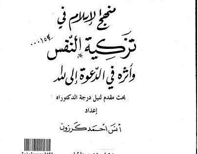 منهج الإسلام في تزكية النفس وأثره في الدعوة إلى الله أنس أحمد كرزون رابط المجلد للتحميل …. منهج الإسلام في تزكية النفس…