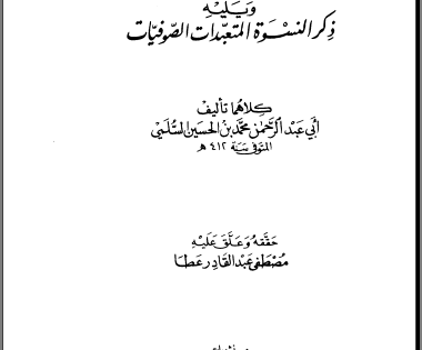 طبقات الصوفية – محمد بن الحسين السلمي توفي سنة 412 هـ رابط المجلد للتحميل …. طبقات الصوفية – محمد بن الحسين السلمي -