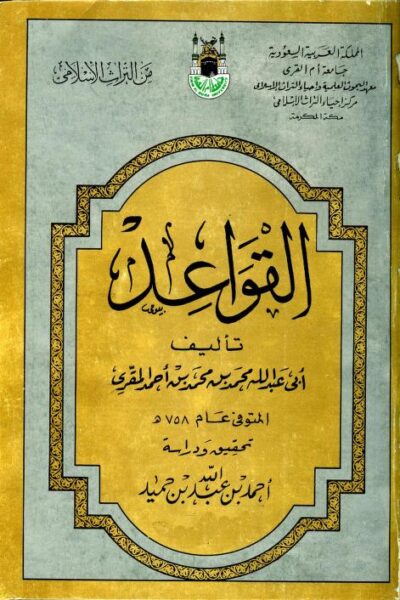 – القواعد للمقري – أبو عبد الله محمد بن محمد بن أحمد المقري المتوفي سنة 759 هجرية رابط المجلد للتحميل …. –المجلد -