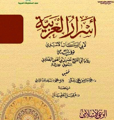 أسرار العربية – أبي البركات الأنباري 513-577 هجرية رابط التحميل أسرار العربية – أبي البركات الأنباري -