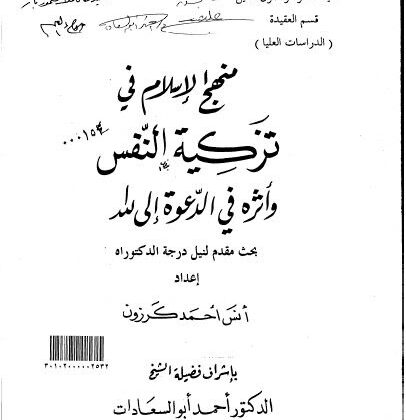 منهج الإسلام في تزكية النفس وأثره في الدعوة إلى الله أنس أحمد كرزون رابط المجلد للتحميل …. منهج الإسلام في تزكية النفس…