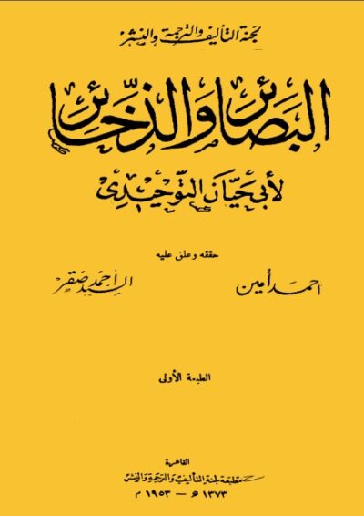 البصائر والذخائر – أبو حيان التوحيدي 310 -414 هجرية روابط المجلدات للتحميل: … تحقيق : د. وداد القاضي المجلد-01 المجلد-02 المجلد-03 المجلد-04 المجلد-05 المجلد-06 ... -