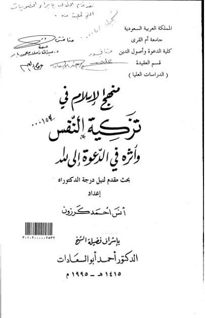 منهج الإسلام في تزكية النفس وأثره في الدعوة إلى الله أنس أحمد كرزون رابط المجلد للتحميل …. منهج الإسلام في تزكية النفس…